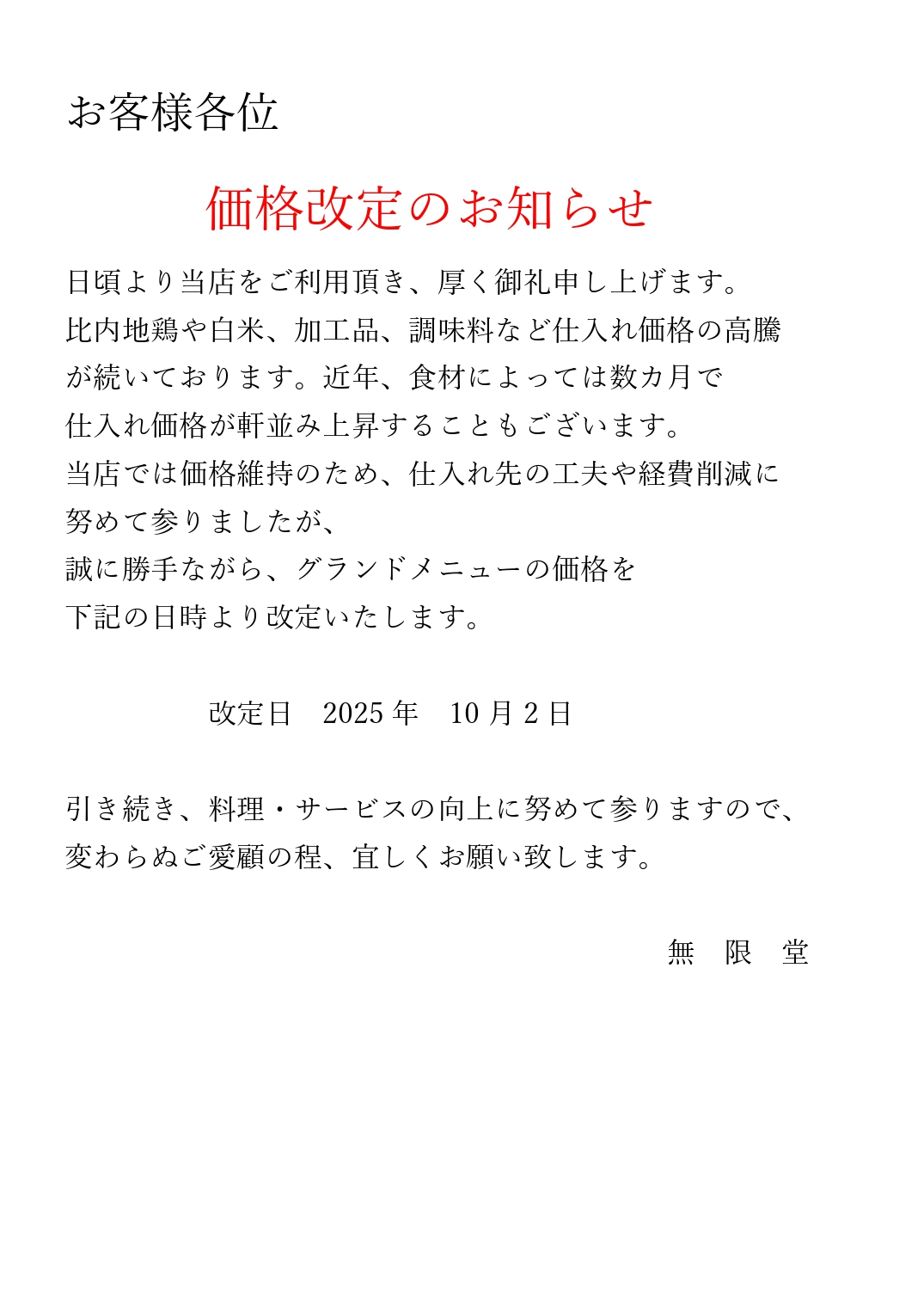 トップページ > 伝承の味処 無限堂大町店