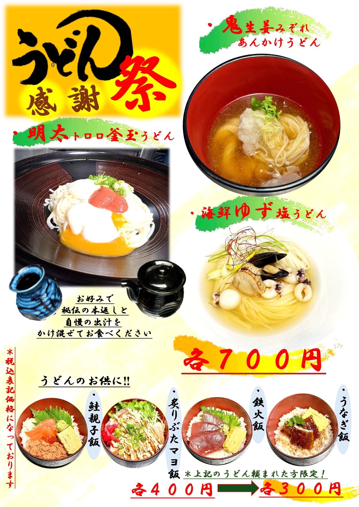 の3コースに稲庭うどんの食べ放題が+440円(税込)でオプションとして付けられます。